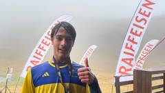 Fotografia: Samuele sorridente e soddisfatto al Tamaro Trail malgrado il tempaccio